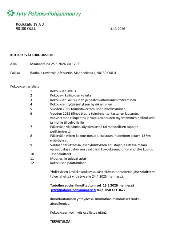 Hei, Jyty Pohjois-Pohjanmaa ry:n jäsen! NYT ILMOITTAUTUMAAN JYTYBESTEILYLLE. JYTY POHJOIS-POHJANMAA RY OTTAA SITOVIA ILMOITTAUTUMISIA VASTAAN 31.1.2026 SAAKKA. JYTY POHJOIS-POHJANMAA RY TUKEE…