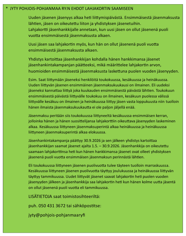 Jäsenhankintakampanja 1.5. - 30.9.2026, Jyty Pohjois-Pohjanmaa ry